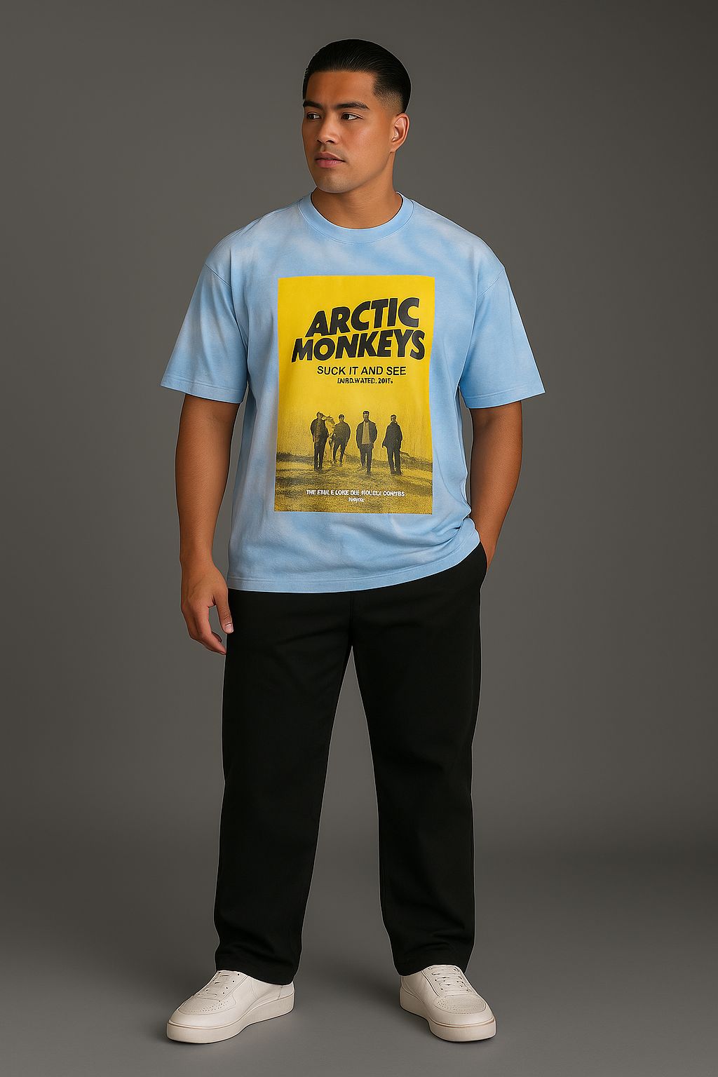 Baggy Fit Monkeys Tshirt White & Sky aaablue